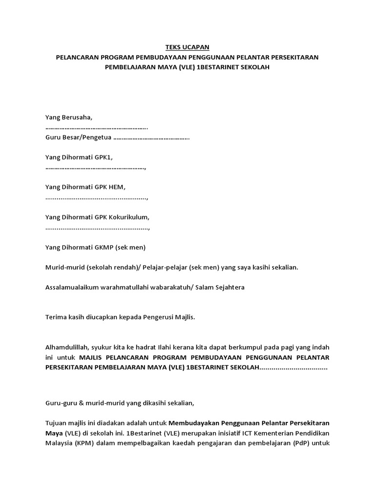 Teks Ucapan Perasmian Vle 2018 Pdf